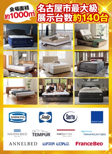 2026月2月9日(月)~3月8日(日)の期間、名古屋市最大級のブランドベッド専門店が「5周年記念ファイナルSALE!!」を開催致します。ご新築やお引越しの際に...