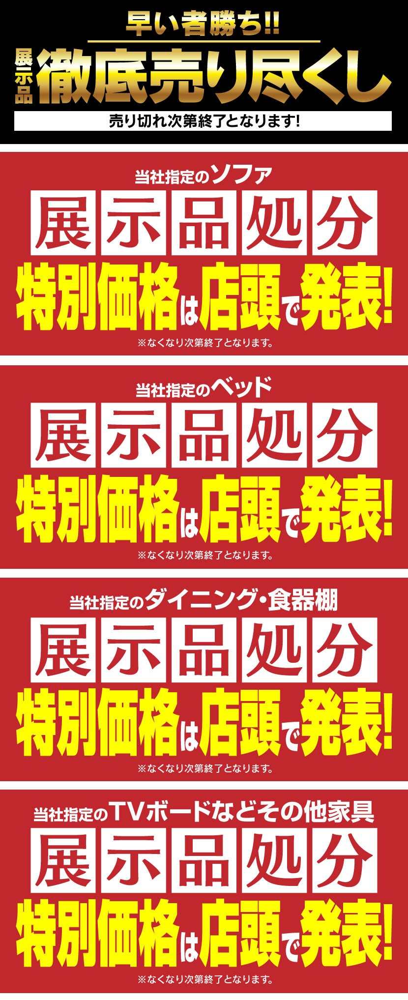 IDC OTSUKA×YAMADA ヤマダ高級家具アウトレット前橋店 家具インテリア 完全閉店売り尽くし 2026年1月24日(土)~2月15日(日) 10時30分~19時30分 毎週木曜日は売場修正のため、店休日とします
