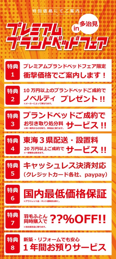 2026年3月7日(土)~3月8日(日)の2日間限定!! 「プレミアムブランドベッドフェア㏌多治見」をセラミックパークMINOにて開催いたします!! 豪華ラ...