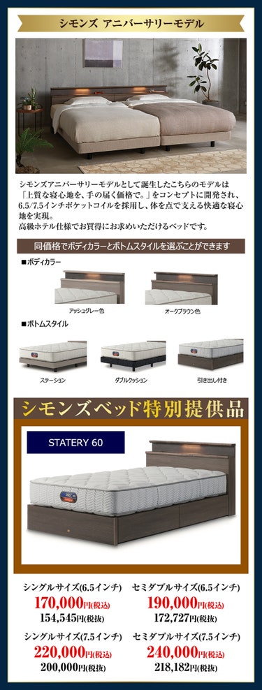 「シモンズの展示品、今が一番安い。」 3F売場の屋根工事に伴う展示入替のため、 店頭でご体感いただいていたシモンズのベッド展示品を、 現品限りの特別価格で...